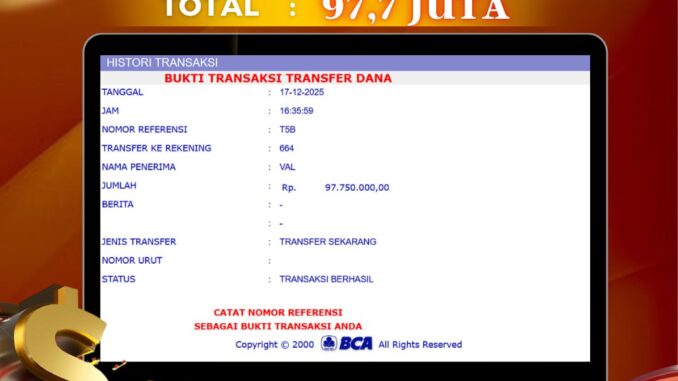 Bukti transfer yang dapat anda lihat adalah bukti SAH / VALID yang langsung di dapatkan melalui bukti transaksi dari Bank yang digunakan untuk pengiriman dana pada rekening pemilik user id. Terima kasih kami sampaikan kepada para pengguna setia DEWALIVE yang telah menggunakan situs kami, sebagai Bandar Terpercaya yang pastinya membayar semua kemenangan member hingga lunas. Apakah DEWALIVE PENIPU ? Reputasi “DEWALIVE TERPERCAYA” sudah sangat melekat.