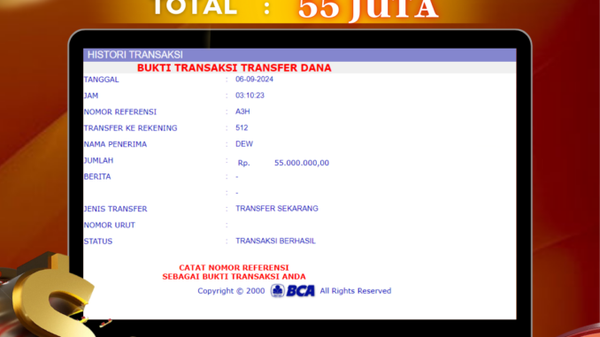 Bukti transfer yang dapat anda lihat adalah bukti SAH / VALID yang langsung di dapatkan melalui bukti transaksi dari Bank yang digunakan untuk pengiriman dana pada rekening pemilik user id. Terima kasih kami sampaikan kepada para pengguna setia DEWALIVE yang telah menggunakan situs kami, sebagai Bandar Terpercaya yang pastinya membayar semua kemenangan member hingga lunas. Apakah DEWALIVE PENIPU ? Reputasi “DEWALIVE TERPERCAYA” sudah sangat melekat.